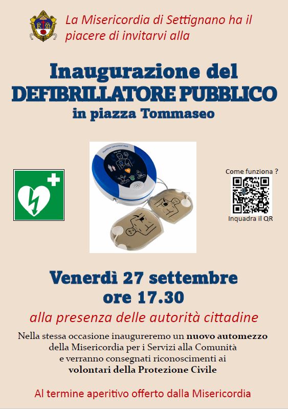 La Misericordia di Settignano ha deciso di mettere un DAE fa disposizione della popolazione e ne ha posizionato uno, esternamente alla propria sede.
